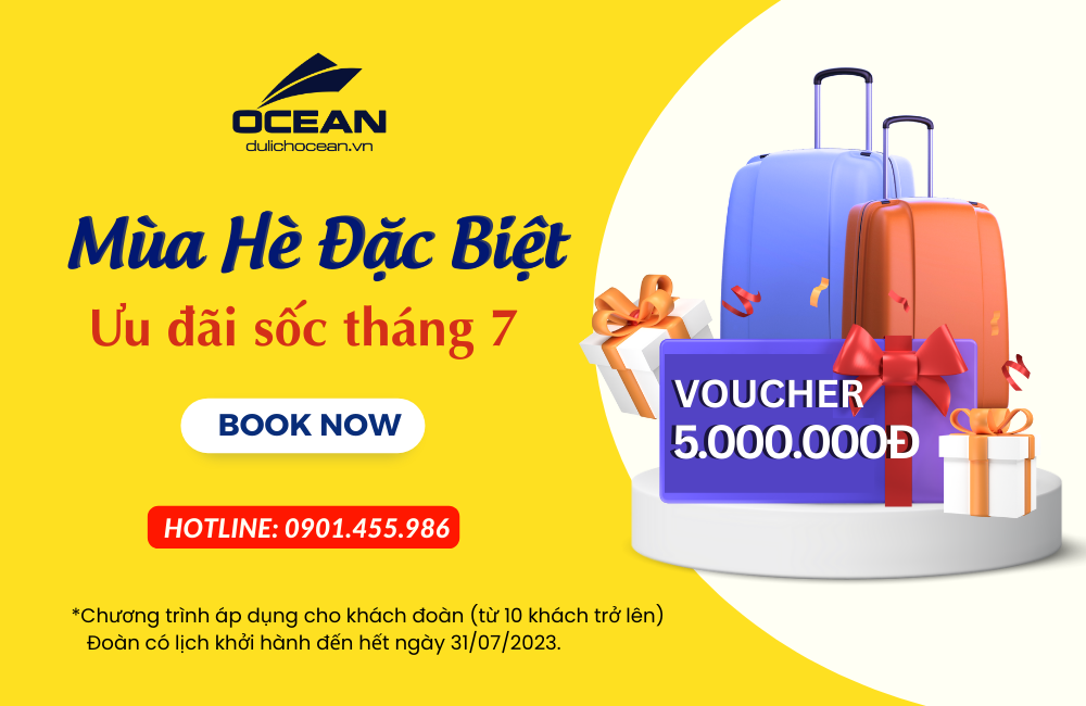 Đón chào những ngày hè tràn đầy năng lượng và màu sắc, Dulichocean xin gửi đến bạn một chương trình khuyến mãi đặc biệt, mang tên “MÙA HÈ ĐẶC BIỆT”. Đây là cơ hội để bạn trải nghiệm những chuyến du lịch tuyệt vời và nhận những ưu đãi đặc biệt từ chúng tôi. Chương trình được thiết kế đặc biệt để mang đến cho bạn những trải nghiệm không thể quên trong mùa hè này. Từ những điểm đến đẹp mê hồn, những hoạt động thú vị và ẩm thực tuyệt vời, chúng tôi cam kết sẽ mang đến cho bạn những kỷ niệm đáng nhớ và trọn vẹn.